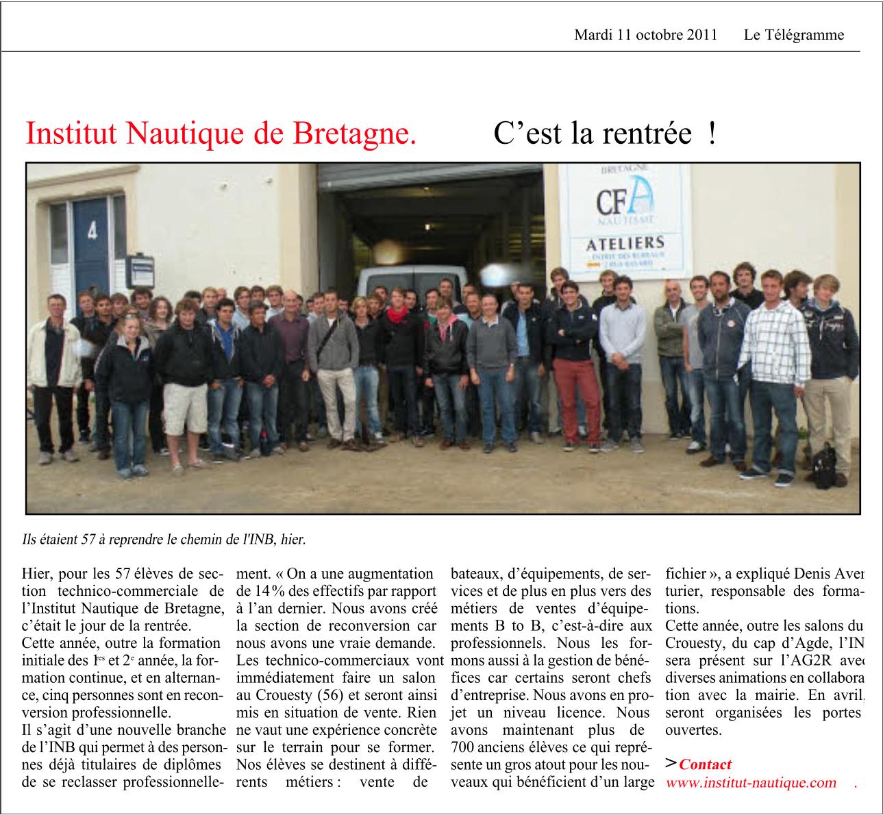 Rentrée des TCISN vue par le Télégramme vendredi 14 octobre 2011 Le Télégramme 11 octobre 2011 C'est la rentrée ! Précédent Suivant